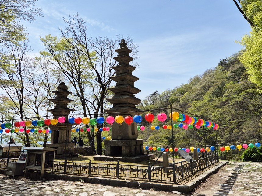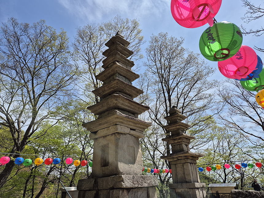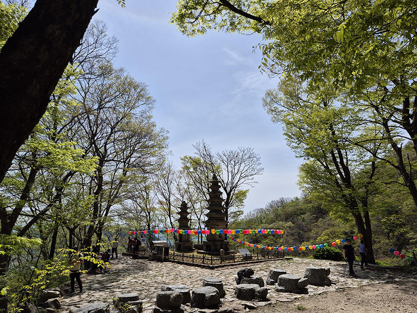 제8경 남매탑은 동학사에서 삼불봉으로 가는 길목에 위치한 두 개의 탑으로 오누이탑으로도 불리며 정식 학명은 '공주청량사지오층석탑'입니다. 상원암과 함께 삼불봉 산자락에 자리하여 관음봉으로 가는 중간 기점으로 쉼터이기도 합니다.