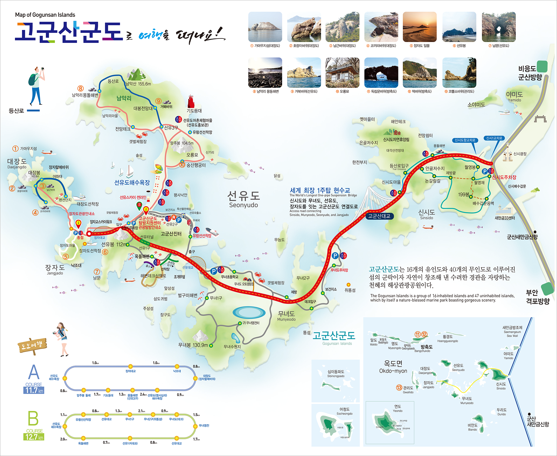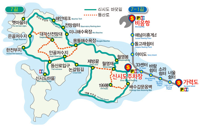 - 12.4km, 315분 소요 - B코스 : 스카이선라인 - 선유명 - 무녀도주차장 - 무녀봉 - 선유도관광안내소 - 스카이선라인