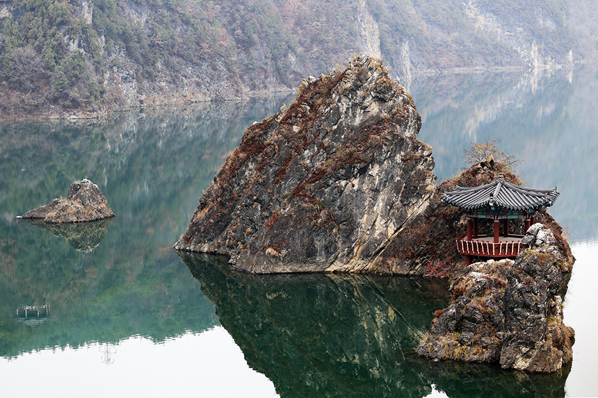 단양 도담삼봉(島潭三峯)은 남한강 한가운데 바위 봉우리 세 개가 나란히 있는 국가 명승으로 단양팔경 중 단연 으뜸으로 조선 개국공신 정도전이 어린 시절을 보낸 곳으로 후세 사람들은 이곳에 그의 동상을 세워 늘 단양 도담삼봉을 바라볼 수 있도록 했다고 합니다. 남한강과 소백산, 주위 풍광이 잘 어우러져 언제라도 방문하여 즐길 수 있지만 이른 봄, 가을 아침에 물안개와 함께 감상하면 매우 신비스럽고 오묘한 분위기를 만끽할 수 있습니다.