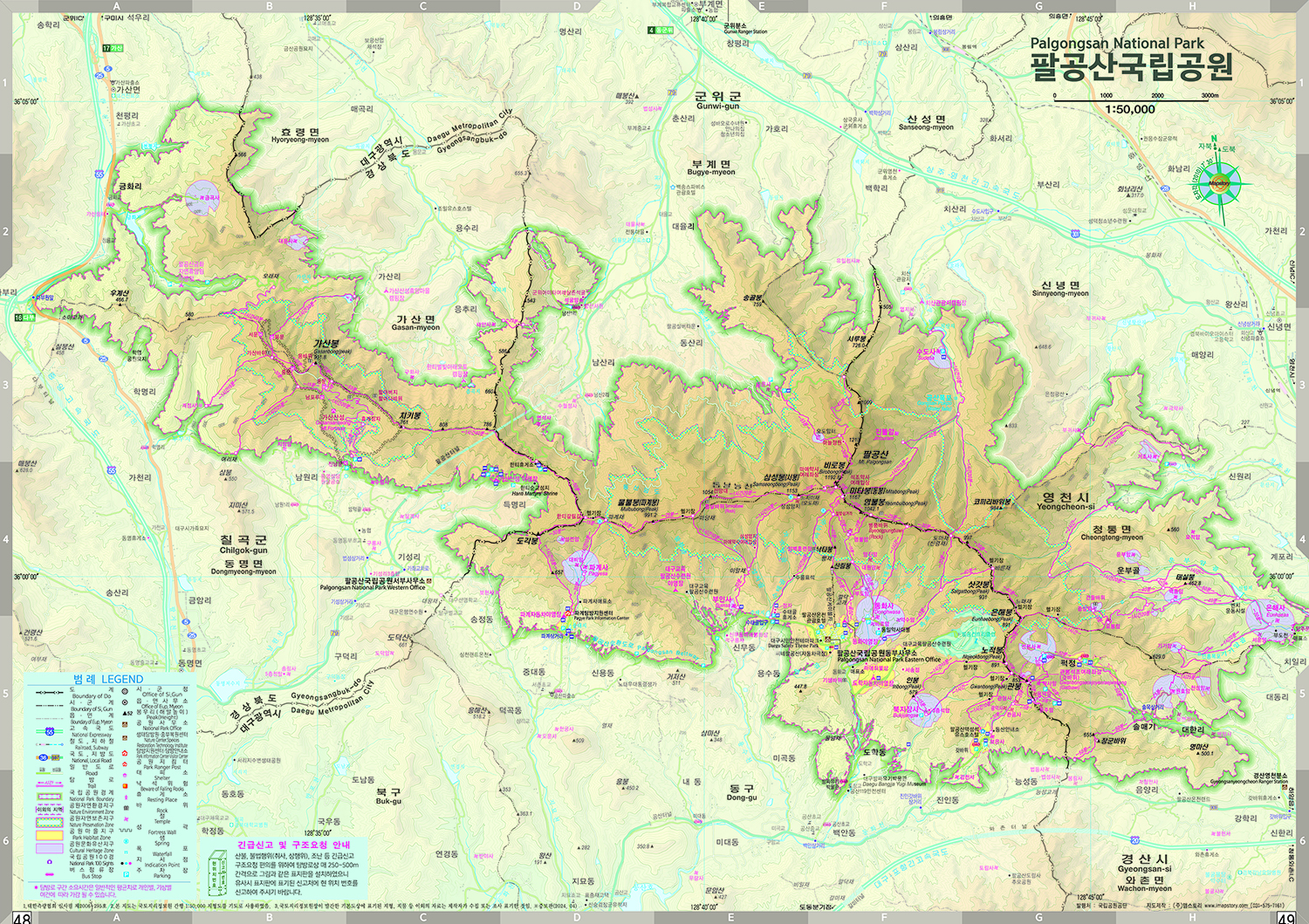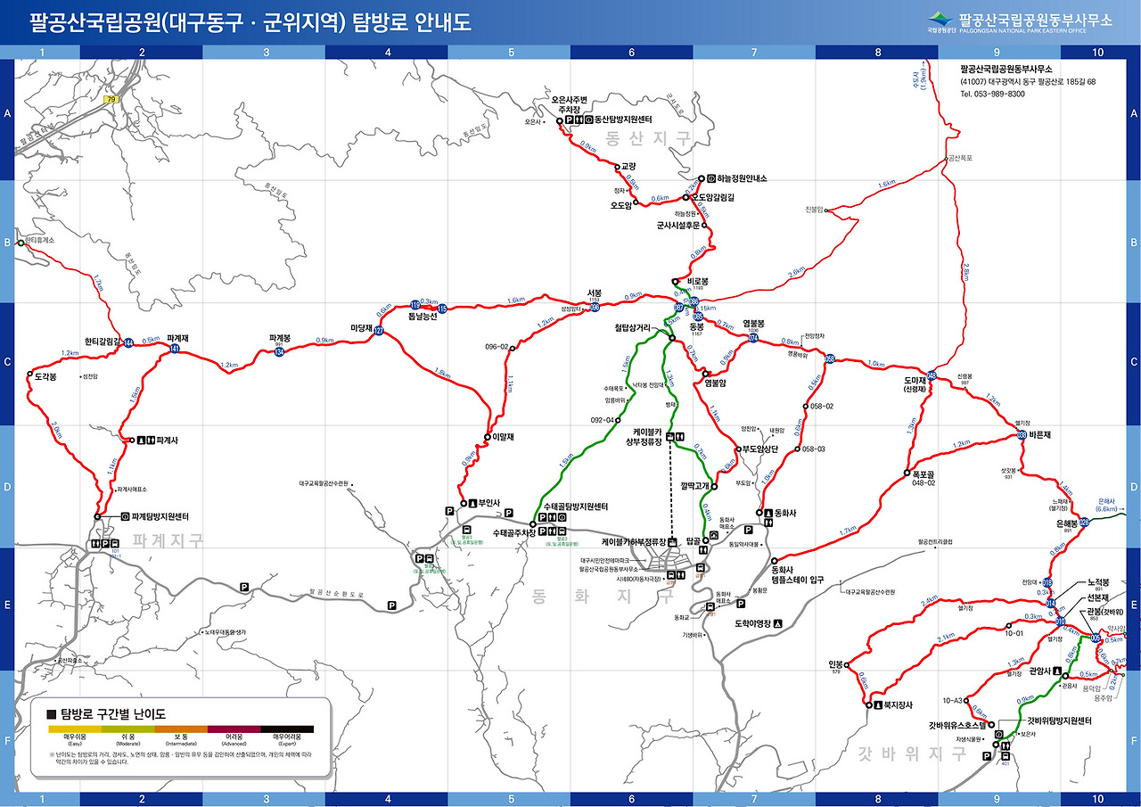 "팔공산 등산 지도, 탐방 코스"