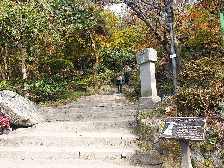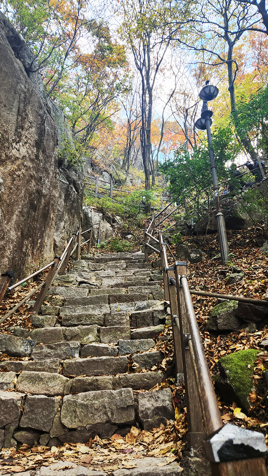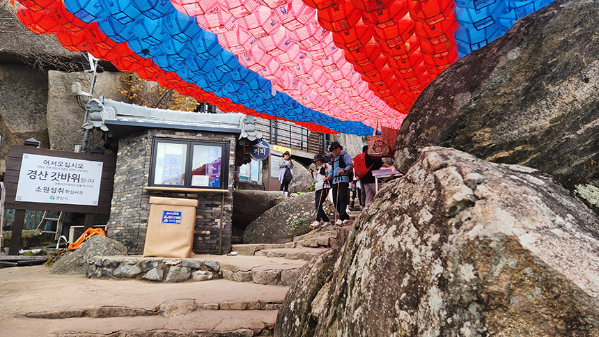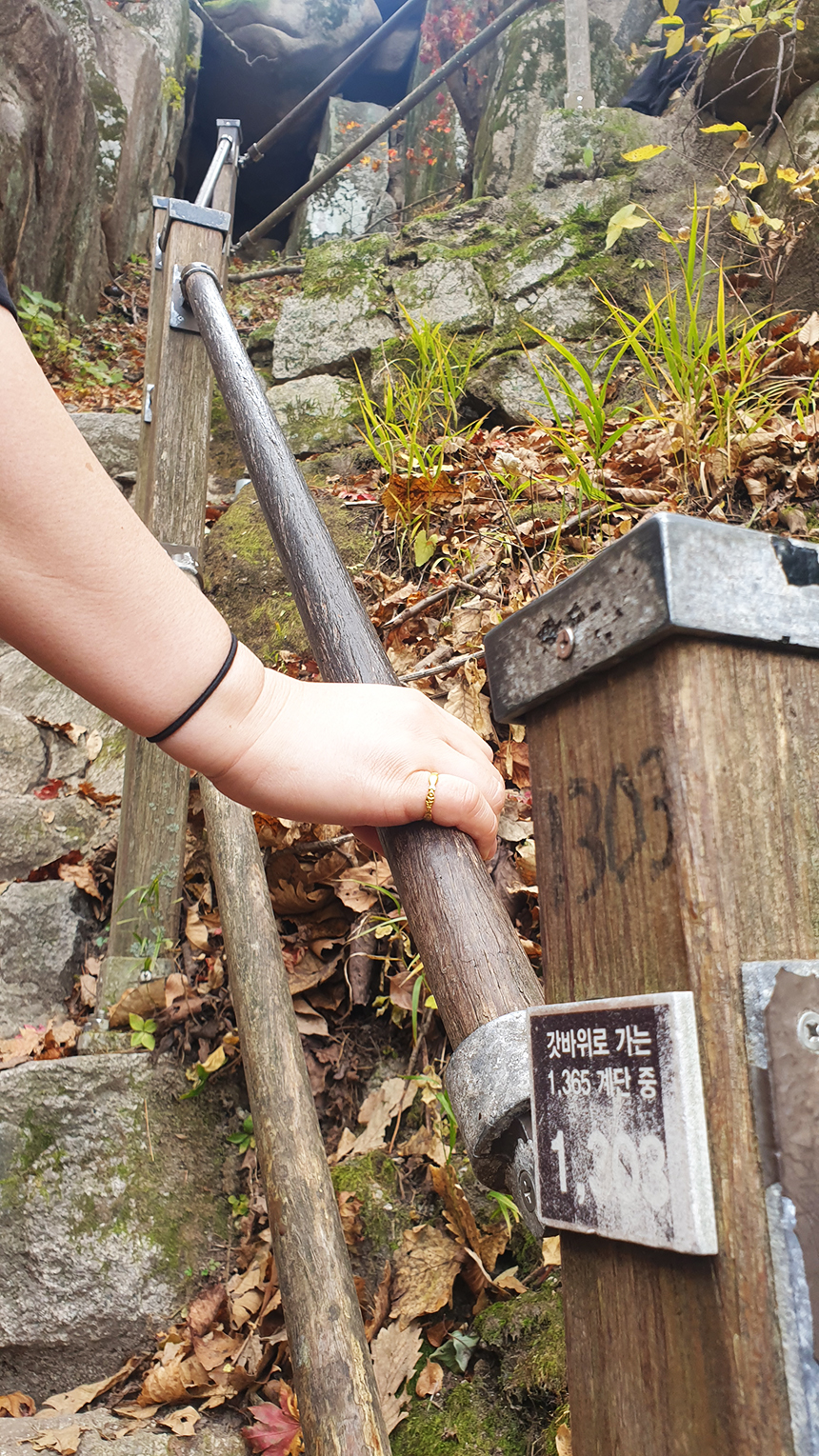 관암사까지는 비교적 수월한 구간이지만 관암사 이후 갓바위까지 1년 365일을 뜻하는 1365개의 돌계단을 걸어 올라야 하는 힘든 구간으로 기도를 드리기 위해 찾는 길이므로 수행하듯 한걸음 한걸음 오르며 소원을 빌어봅니다.