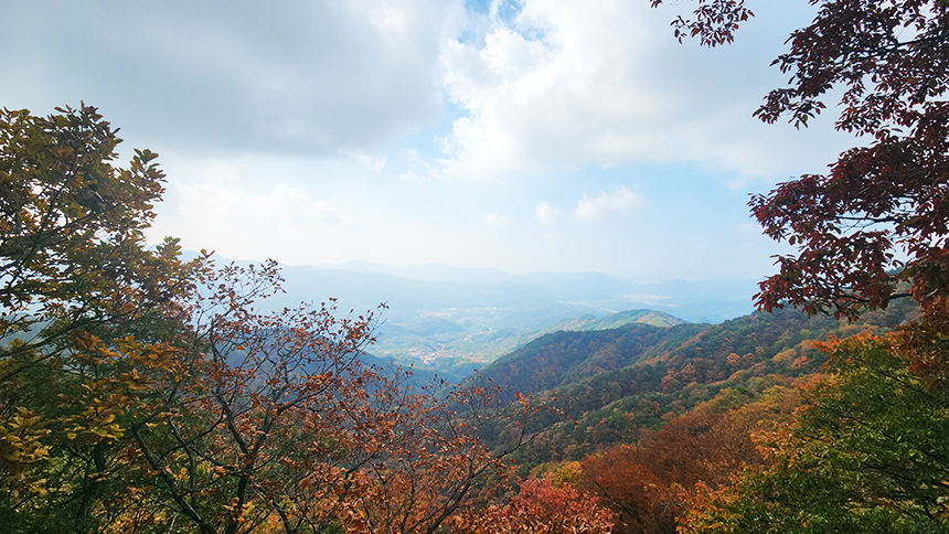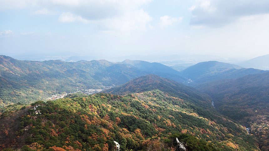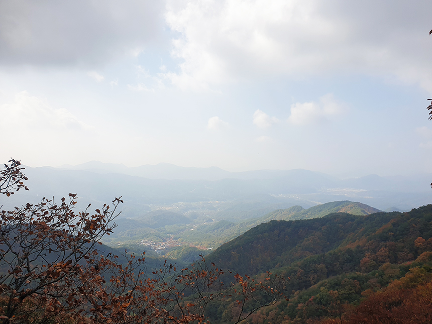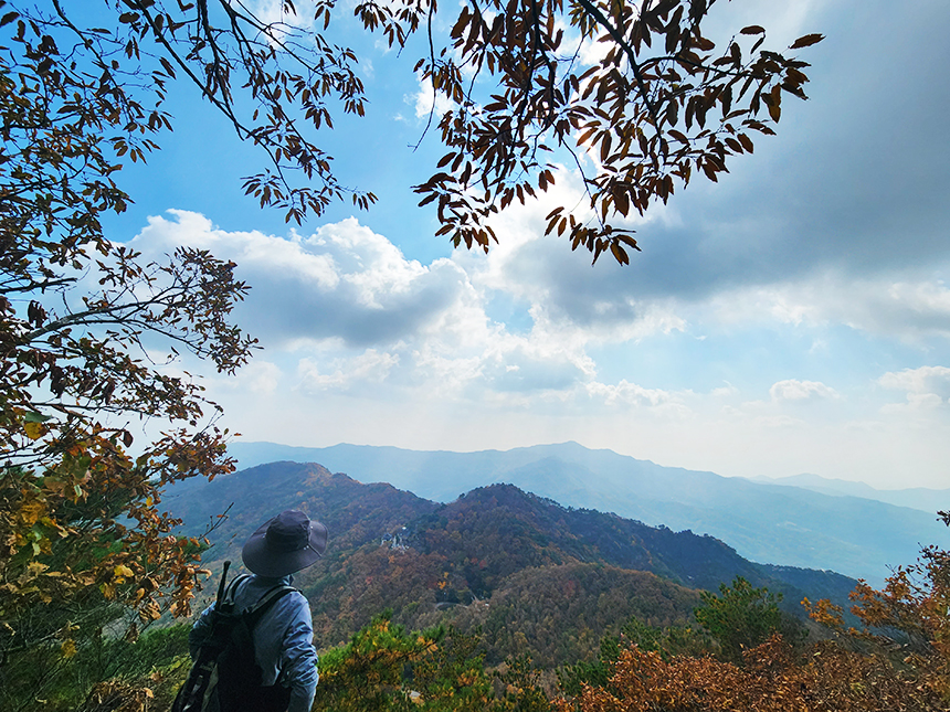 역시 산에 올라야만 볼 수 있는 드넓은 산줄기와 아름다운 풍경을 볼 수가 있죠? 산아래에서 불어 오르는 바람에 잠시 쉬며 땀도 말려봅니다.