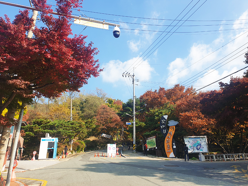 늦가을에 찾아간 팔공산 자락엔 단풍꽃이 활짝 피었네요. 이 갓바위지구 주차장을 시작으로 팔공산에 오르기 시작합니다.