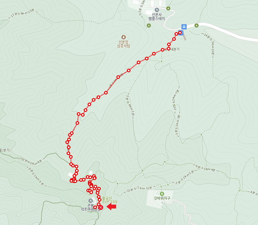 - 주요 코스 : 선본사 > 팔공산 갓바위 > 선본사 복귀