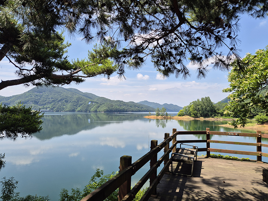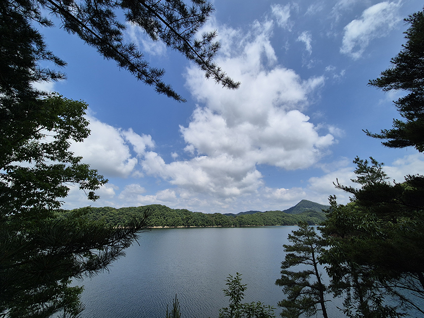 울창한 숲사이로 이어진 길을 따라 걷다 보면 어느샌가 시원하게 대청호 풍경이 펼쳐지며 힘든 여정을 잊게 합니다.