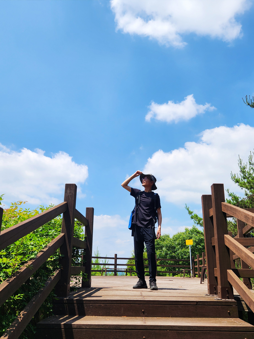 숲길을 따라 조금 더 걸으면 제2전망대를 만나게 됩니다. 제2전망대는 제1전망대보다는 약간 시야가 가려지긴 하지만 푸른 하늘과 자연경관을 감상하기엔 부족함이 없네요~