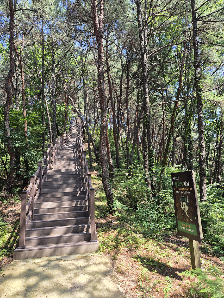 대통령이 머물던 별장답게 둘레길(산책로)은 대체적으로 관리, 정비가 잘되어 있어 걷기에 무척 좋아요. 숲길을 따라 걷다 언제든지 시원하게 펼쳐진 대청호 전경을 감상하며 쉴 수 있는 쉼터가 곳곳에 있어 쉬어가며 여유 있게 걸을 수 있어요.