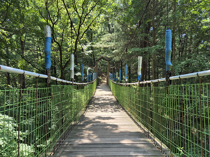 통일의 길(2.5km)과 등산로(1.4km)는 초가정에서 시작하여 청남대를 둘러싸고 있는 산 능선을 따라 출렁다리와 1, 2 전망대를 지나는 등산 트레킹 코스입니다. 등산이긴 하지만 그리 높지 않아 어렵지 않게 걸을 수 있어요~