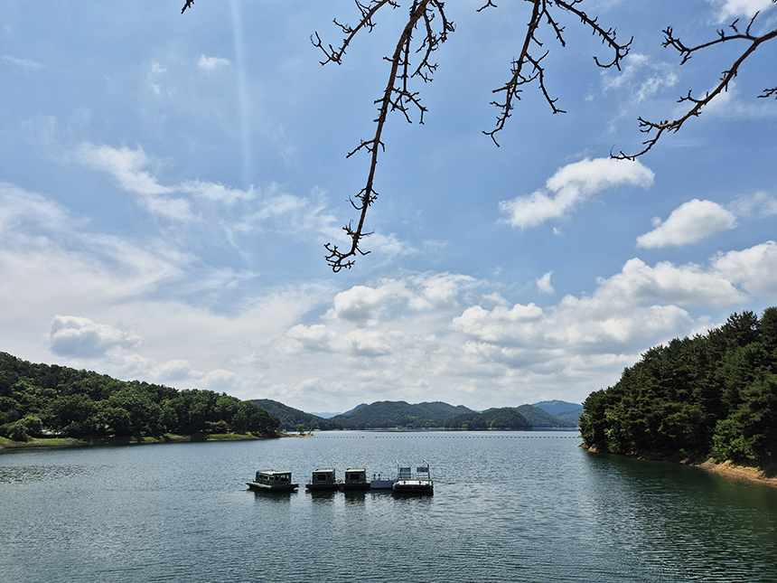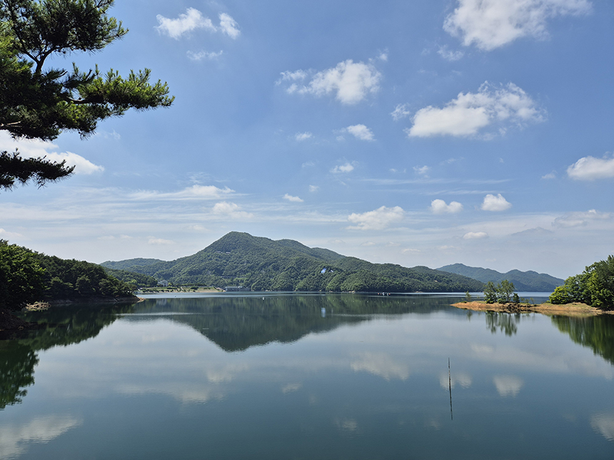 푸른 하늘 못지않게 시원하게 펼쳐진 대청호도 푸른빛을 띠고 있네요.