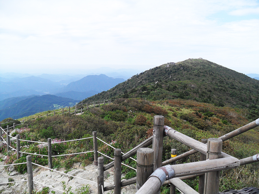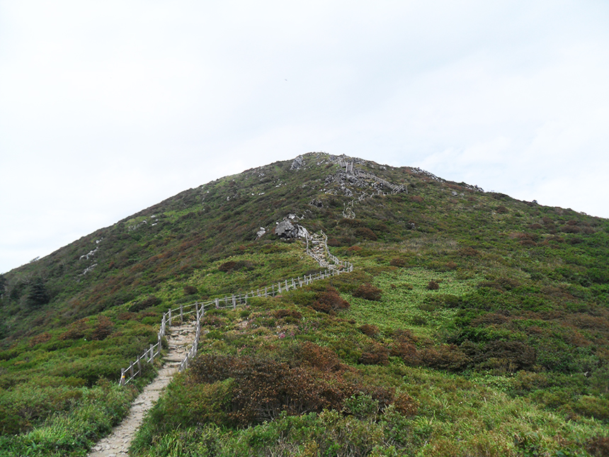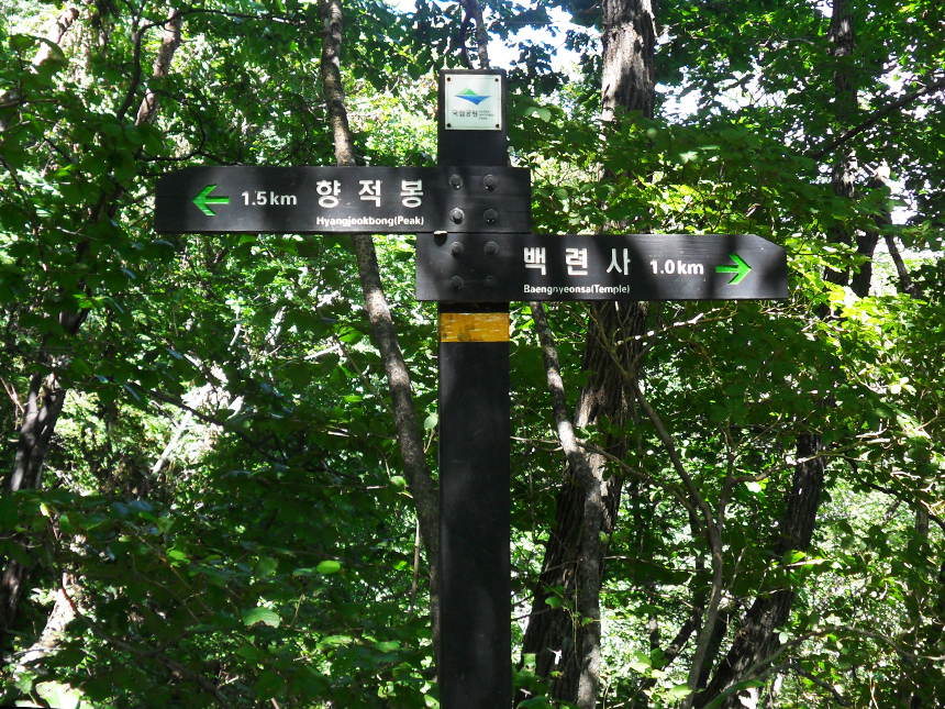 백련사부터 향적봉으로 오르는 구간은 환상종주코스와 겹치는 구간으로 울창한 숲길을 따라 오르며 이 구간은 비교적 어려운 코스로 탐방객의 안전을 위해 계단과 안전난간이 설치되어 있습니다.