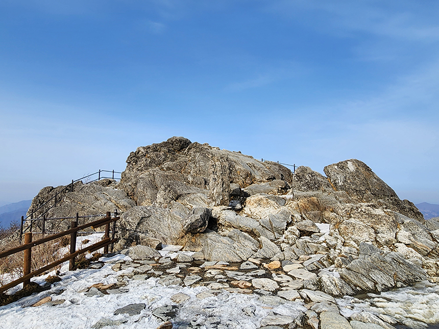 덕유산의 남쪽 주봉으로 향적봉과 이어지는 종주코스로 남쪽에 위치한 최고봉으로 1,508m이며 지형이 험준하고 겨울철 설경을 보기 위해 즐겨 찾는 탐방코스입니다.