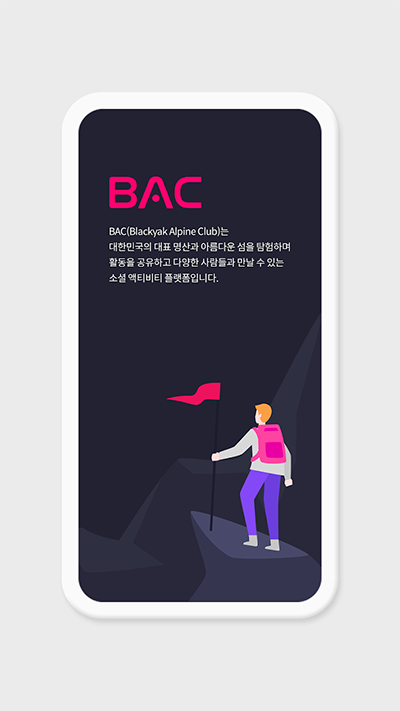 - BAC 앱 설치 : 구글 플레이스토어나 앱스토어에서 'Blackyak Alpine Club' 앱을 다운로드합니다.