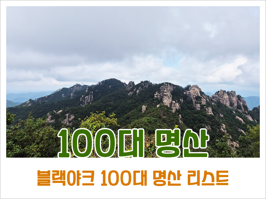 산림청 선정 100대 명산과 더불어 가장 신뢰받는 "블랙야크 100대 명산" 도전을 시작해보자구요. 서울·경기·인천 지역 15개, 강원도 21개, 충청도 16개, 전라도·제주도 26개, 경상도 22개의 산들이 여러분의 도전을 기다리고 있습니다.