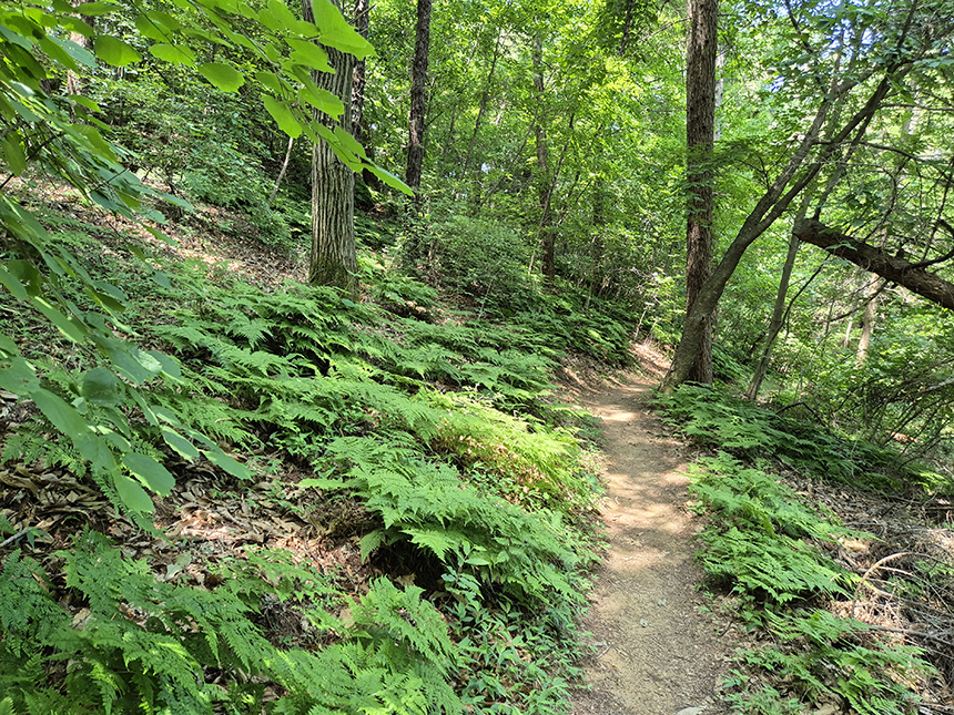 이 고비 사잇길은 괴화산 북쪽 방향으로 햇빛이 잘 들어오지 않고 약간 습한 느낌이 있네요. 그래서 고비들이 더욱 잘 자라는 것 같아요. 산길이 고만고만하겠지만 이 고비들이 꽉 차있어 다소 색다른 느낌을 주기도 하고 마른 산길과 다르게 예쁘게 보이네요.
