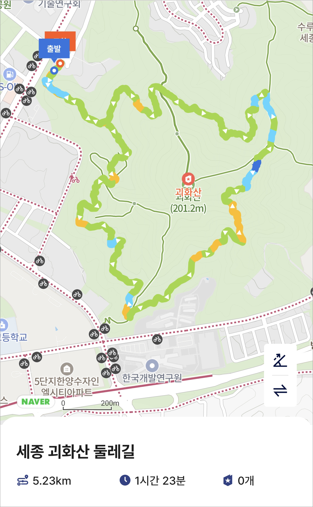 세종 괴화산 둘레길 등산 코스, 트랭글앱 운동 기록
