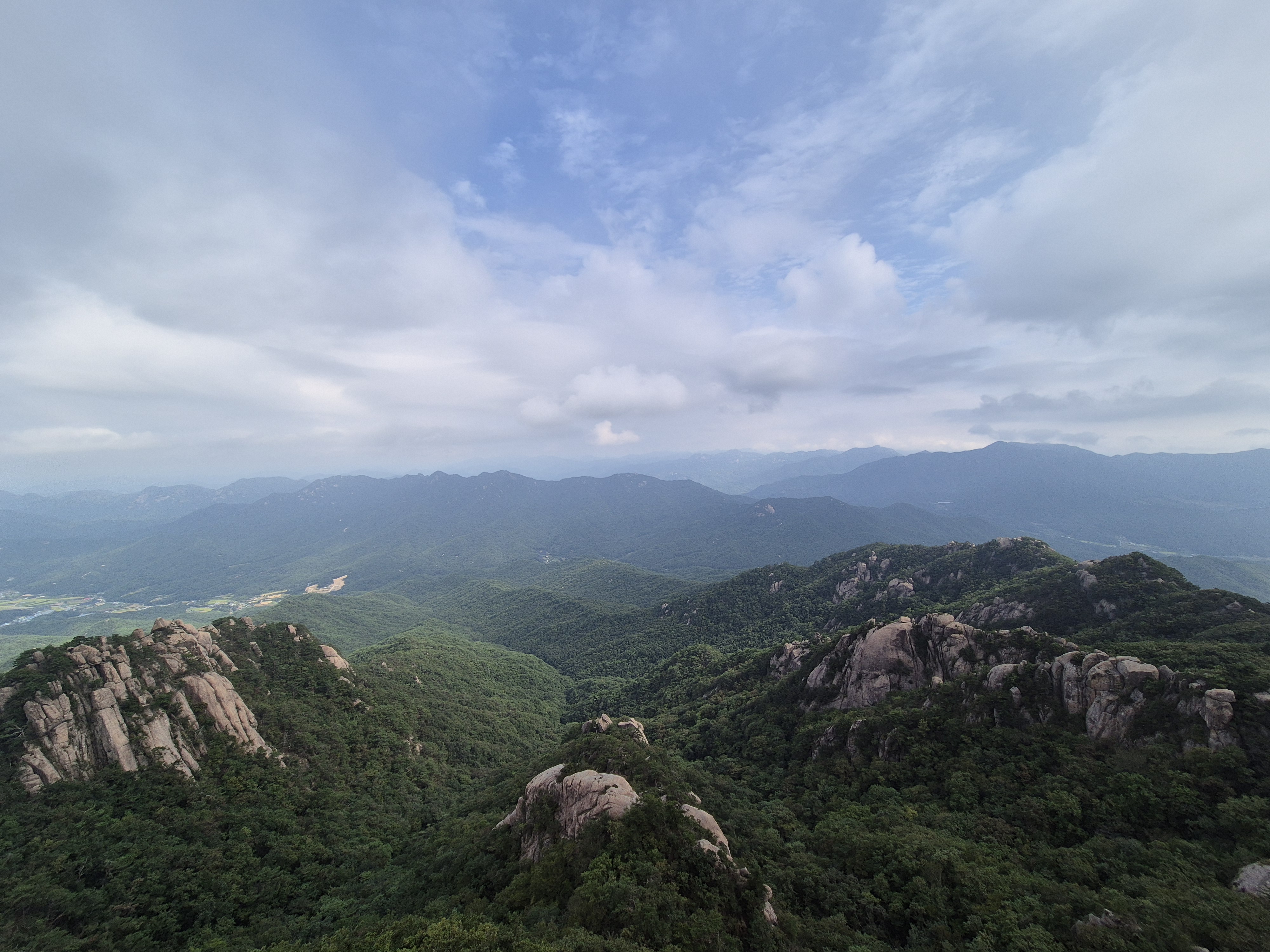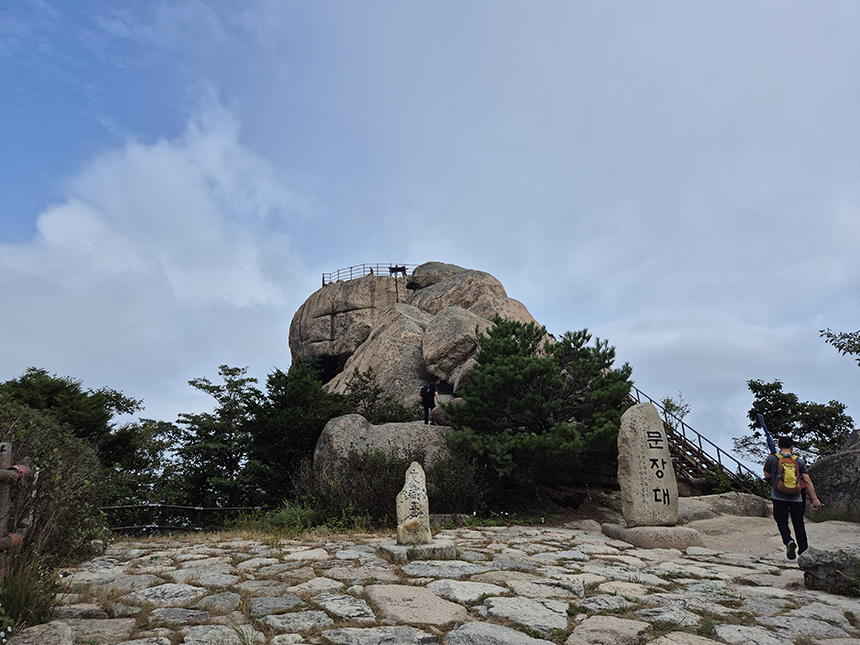 문장대는 속리산에서 가장 유명한 바위 중 하나로, 문장대에서 내려다보는 경치와 함께 기암의 절경을 즐길 수 있는 대표적인 조망지입니다. 바위에서의 조망이 뛰어나며, 그 웅장한 크기와 특이한 형상으로 인해 등산객들에게 매우 인상적입니다. 탁 트인 경치를 즐기며 사진 촬영하기 좋은 명소입니다.