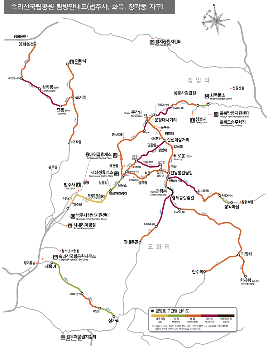 속리산 국립공원, 등산 지도, 탐방 코스 난이도