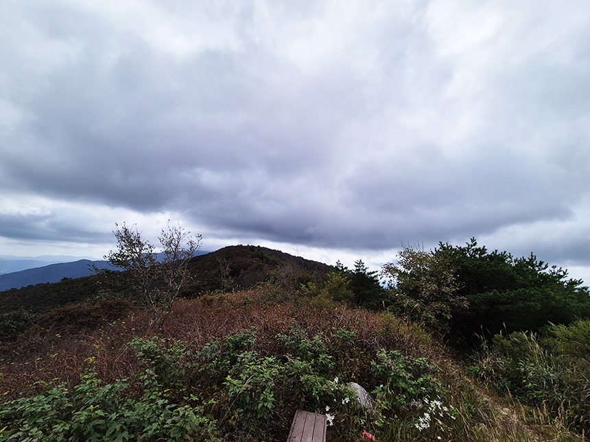 목재 계단 오르막을 오르면 지금부터는 오르락내리락 능선을 타고 배내봉으로 이어집니다. 능선길은 등산로가 넓지 않고 자연 그대로 만들어진 길 같은 느낌이에요. 그래도 걷기엔 나쁘진 않아요.