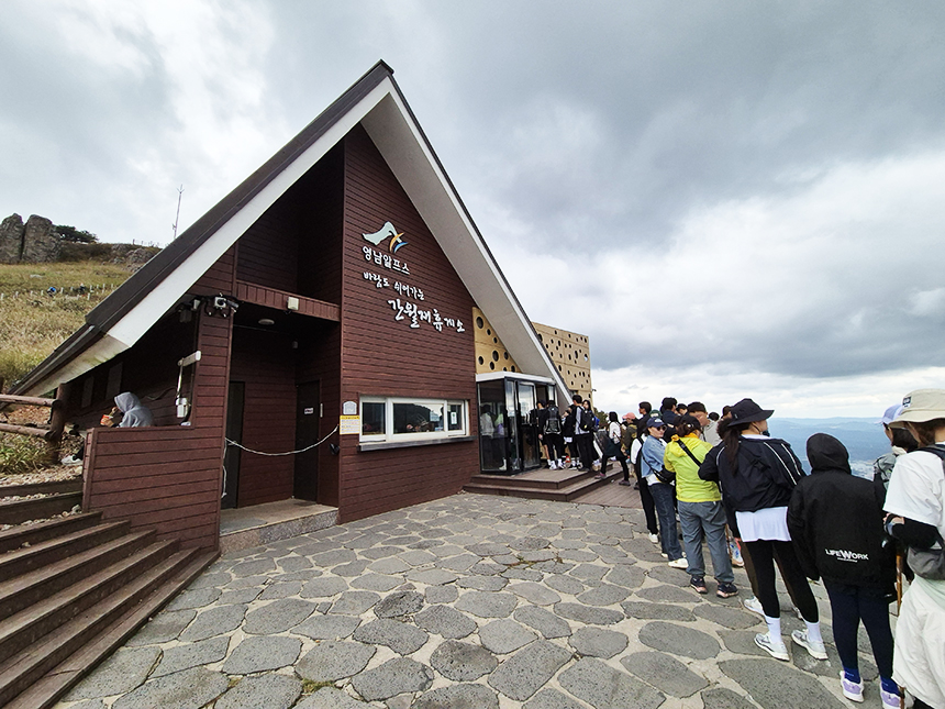 컵라면을 구입해 먹을 수 있는 간월재 휴게소, 휴게소 주변에는 컵라면을 먹고 있는 분들이 구석구석 자리하고 있어요.