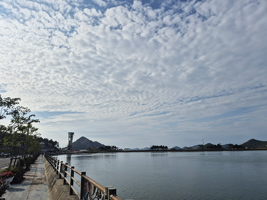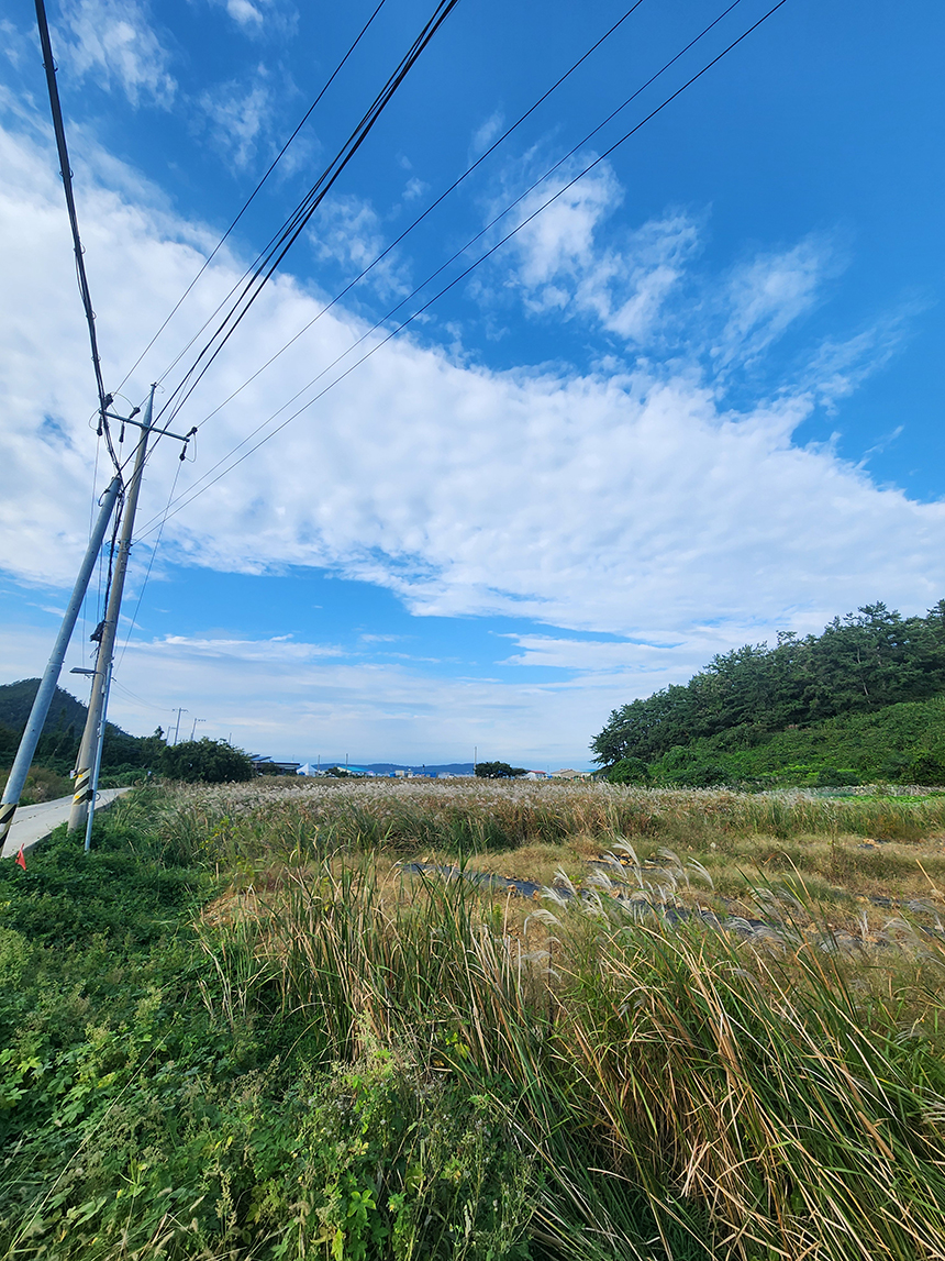 망주봉 건너편의 조용한 해안 마을을 지나다 보니 갈대와 부들이 활짝 피어 바람에 일렁이고 있네요.