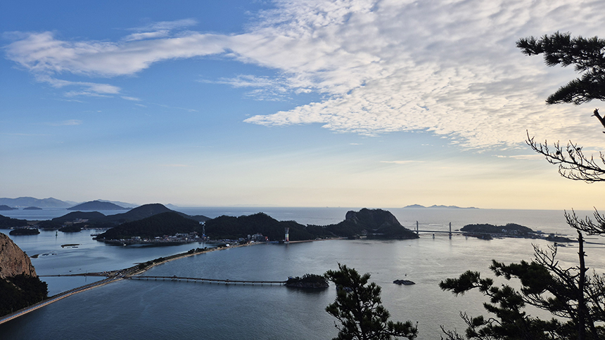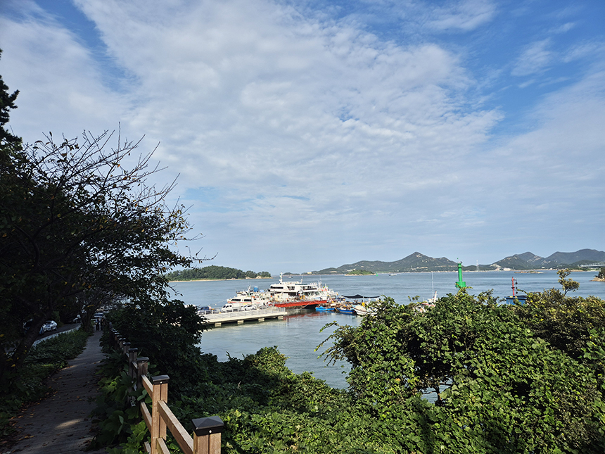 전망대에 도착하니 역시~ 저 멀리 서해바다와 수많은 섬들로 장관을 이룹니다. 시원한 바다바람을 온몸으로 맞으니 흘린 땀도 금새 마르고 파란 하늘과 하얀 구름에서도 가을을 물씬 느껴지네요.