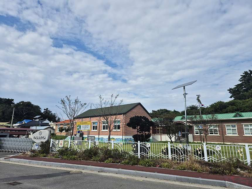 너무도 조용한 섬마을 초등학교인 무녀도초등학교를 지나며 혹시 폐교라도 된 것일까 하는 아쉬움이 있었는데 병설유치원 표시까지 있는 것으로 보아 아직은 운영 중인 학교인 듯합니다. 예전엔 학교 종소리와 함께 많은 아이들이 이 학교 구석구석을 뛰어다녔겠죠? 요즘 시골에서는 아이들의 웃음소리를 들을 수 없어요. ㅠㅠ
