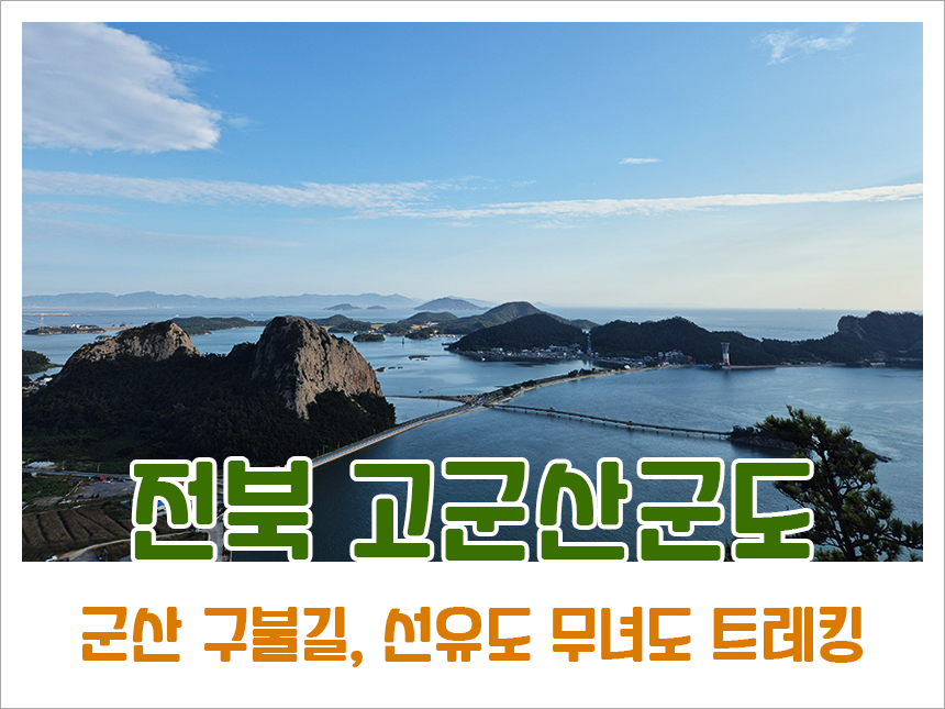 고군산도 트레킹코스는 16개의 유인도와 40여 개의 무인도로 이루어져 섬과 섬을 잇는 해변을 따라 걸을 수 있는 코스입니다. 이번에는 고군산군도의 트레킹 코스인 선유도 코스와 무녀도 코스를 소개해 볼께요.