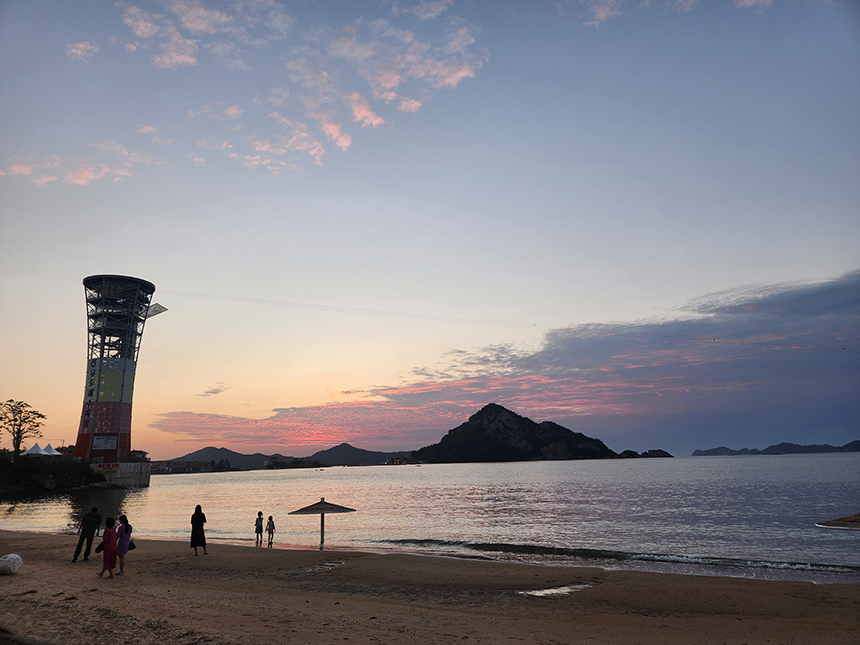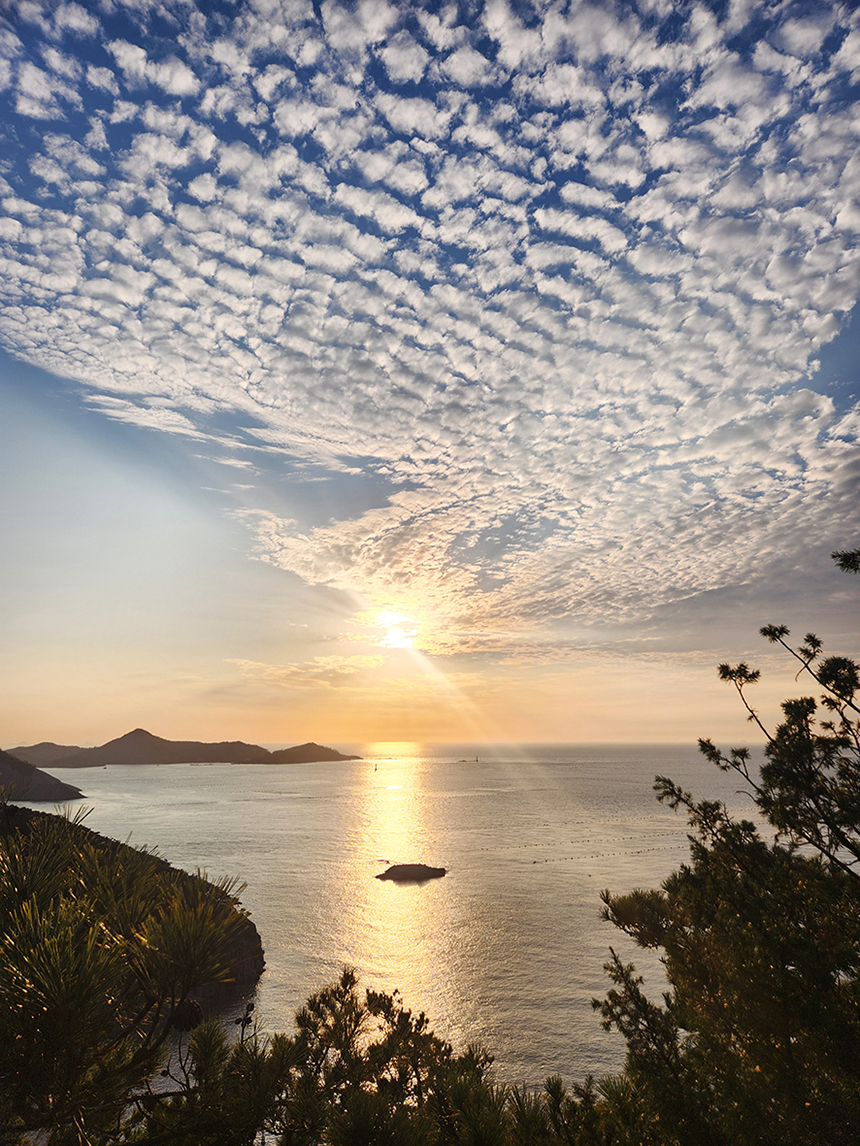 서서히 서쪽 하늘은 노란빛으로 물들어가고 바다 위에는 노을의 아름다운 풍경을 보실 수 있어요.